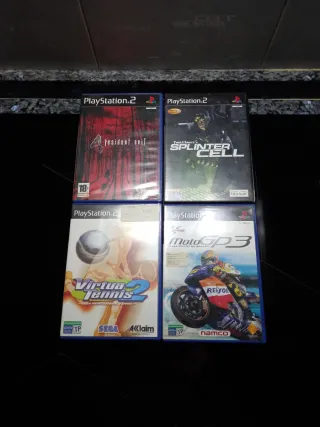 Se vende lote de 4 cajas de videojuegos para PlayStation 2, todas con su manual en español. - Resident Evil 4 - Tom Clancy's Splinter Cell - Virtua Tennis 2 - MotoGP 3 - Lote de las 4 por - 15 e