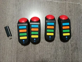 Lote de mandos o 'buzzers' para los juegos de preguntas Buzz. - Compatibles con PlayStation 2 y PlayStation 3. - Diseño ergonómico con botones de colores. - Conexión por cable USB.