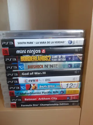 Lote de juegos para PlayStation 3. - South Park: La Vara de la Verdad - Borderlands 2: Game of the Year Edition - Bioshock Infinite - God of War III - FIFA 18 Legacy Edition - Angry Birds Trilogy - MotorStorm: Pacific Rift - Batman: Arkham City - Formula One: Championship Edition