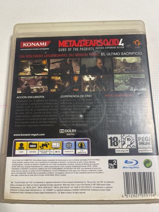 Videojuego Metal Gear Solid 4: Guns of the Patriots para PlayStation 3. - Juego de acción y sigilo. - Incluye carátula y manual en español.