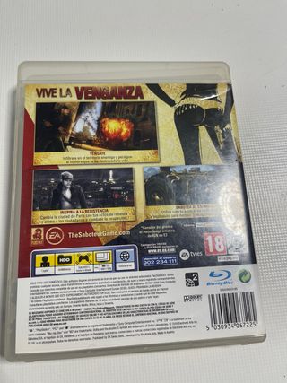 Videojuego The Saboteur para PlayStation 3. - Juego de acción y disparos en mundo abierto. - Desarrollado por Pandemic Studios. - Incluye carátula y disco.