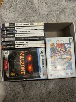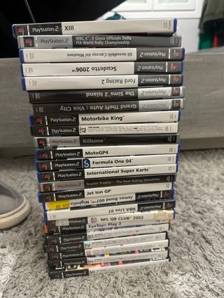 Lote de 24 videojuegos para PlayStation 2. - XIII - WRC 4: World Rally Championship - Los increibles - Scudetto 2006 - Ford Racing 2 - The Sims 2 Island - Grand Theft Auto: Vice City - Motorbike King - Killzone - MotoGP4 - Formula One 04 - International Super Karts - Tourist Trophy - The Real Riding Simulator - Jet Ion GP - James Bond 007: Nightfire - NBA Live 07 - NFL QB CLUB 2002 - EyeToy: Play 3 y mas entre los que se ven en fotos