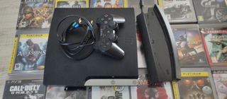 Consola PlayStation 3 modelo Slim en color negro. Incluye varios accesorios y juegos. - Mando dorado. - Mando negro. - Pistola roja y Sharp shooter move con sus respectivas cajas. - Mando move navigator controler nuevo a estrenar - Juego Time Crisis razing storm - Juego Sports Champions. - Juego Diablo III. - Juego Dance!. - Juego Battlefield Bad Company 2. -en la memoria de la consola incluye el house of the dead 4 y 3 y el house of the dead overkill.