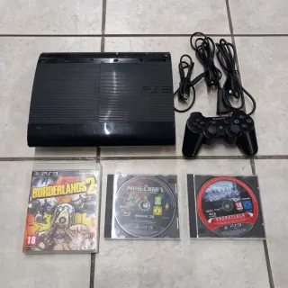 Consola PS3 Super Slim Negra + 2 Mandos +2 juegos