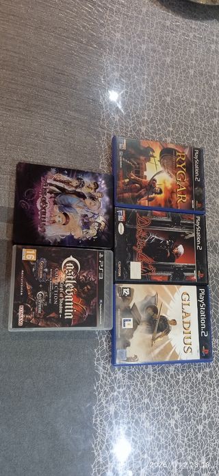 Lote de 6 juegos, completos y en español, compuestos por kingdom Hearts 2 de ps2, gladius de ps2, débil may cry de ps2 , rygar de ps2, Castlevania collection de PS3 y tales xillia 2 de PS3. No se admite devolución y envío debidamente protegido con cartón y plástico de burbuja.