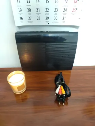 Consola PlayStation 3 Super Slim en color negro. - Capacidad de 120GB. - Incluye Consola + cable AV y cable corriente, regalo disco de juego.
