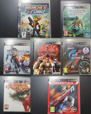Juegos Originales para PS3 Versión PAL España Todos los juegos han estado conservados en su caja y funcionando perfectamente. Algunos conservan manual original (interesados paso foto📷💿) -Ratchet & Clank: Armados hasta los dientes 15€ -Tekken 6 15€ -God of War III 10€ -Assassin's Creed IV Black Flag 9€ -Gran Turismo 5 7€ -Battlefield 4 5€ -Need for Speed: Hot Pursuit 10€ 🎮Vendo LOTE COMPLETO 7 juegos por 60€