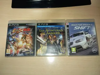 Vendo pack variado de 3 juegos para PlayStation 3. Todos son edición PAL España y están completos con su manual. 🎮 EL LOTE INCLUYE: Street Fighter X Tekken: El crossover definitivo. Combates por parejas entre los personajes de Capcom y Namco. El Señor de los Anillos: Las Aventuras de Aragorn: Vive las batallas más épicas de la Tierra Media desde una perspectiva aventurera. (Compatible con PS Move, aunque se puede jugar con mando normal). Need for Speed: Shift: Conducción que mezcla simulación y arcade para sentir la velocidad real en pista. 💎 ESTADO: Condición: Muy buen estado de conservación. Discos: Cuidados y funcionando