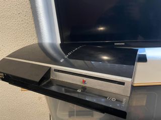 Consola PlayStation 3 en color negro, ideal para piezas o para quien quiera intentar repararla. La consola se enciende, suena el ventilador y se apaga sola. - Modelo: PlayStation 3 - Color: Negro