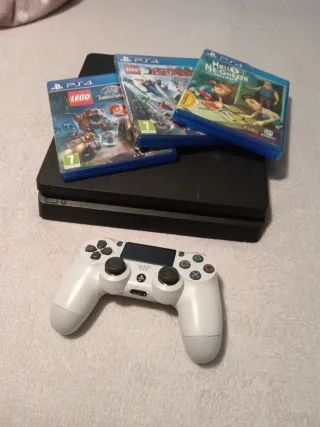 Consola PlayStation 4 1 tb con varios juegos y accesorios. - Incluye 3 mandos (2 negros, 1 blanco) Gafas vr completas con mandos move. Base con carga y ventiladores - Auriculares blancos. - Cámara PlayStation. - Juegos: Hello Neighbor, PES 2020, Battleborn five nights at Freddy Se oyen ofertas