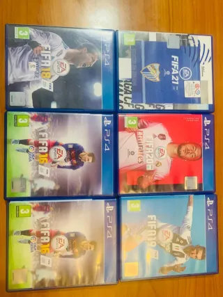 Pack de cinco videojuegos de fútbol para PlayStation 4. - FIFA 16 3€ - FIFA 16 3€ - FIFA 18 5€ - FIFA 19 5€ - FIFA 20 8€ - FIFA 21 10€