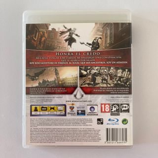 Assassin's Creed II (PS3 – Edición en español) Distribuidor: Ubisoft Fecha de lanzamiento: 17 de noviembre de 2009 Género: Aventura de acción / sigilo Clasificación por edad: PEGI 18+ Jugadores: Solo un jugador Idiomas: Totalmente en castellano (audio y subtítulos)