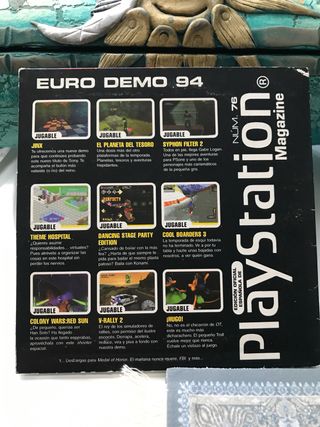 Disco recopilatorio de demos para PlayStation. - Incluye 9 demos jugables. - Juegos incluidos: Jinx, El Planeta del Tesoro, Mr. Driller, Theme Hospital, Syphon Filter 2, Colony Wars, Red Sun, V-Rally 2, Dancing Stage Party Edition, Cool Boarders 3. - Formato PAL. - Edición MC Ediciones.
