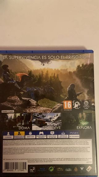 Juego ARK: Survival Evolved para PlayStation 4 (PS4) en buenas condiciones. - Incluye el disco del juego. - Edición física para PS4. - Perfecto para amantes de juegos de supervivencia.