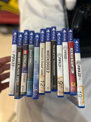 Lote de juegos para PlayStation 4. - FIFA 23 - Call of Duty Black Ops III - LEGO Worlds - God of War - Battlefield V - Assassin's Creed Unity - Watch Dogs 2 - The Last of Us Remasterizado - FIFA 20 - FIFA 21 - Red Dead Redemption II - FIFA 22