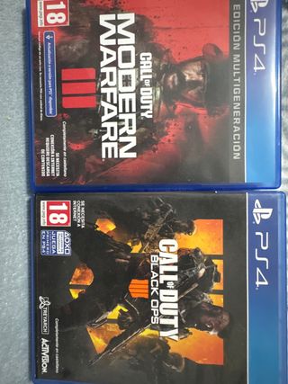 Se venden dos videojuegos para PlayStation 4. - Call of Duty: Modern Warfare III. - Call of Duty: Black Ops 4. - Ambos juegos están completamente en castellano. - Requieren conexión a internet y descarga de contenido.