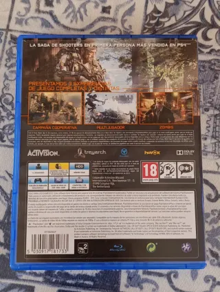 Campañaza futurista y casi Kojima de uno de los Black Ops más recordados. Multitud de modos de juego. Disco y caja perfectos. Menos carátula completamente en castellano. No baja de 15 en tiendas de segunda mano.