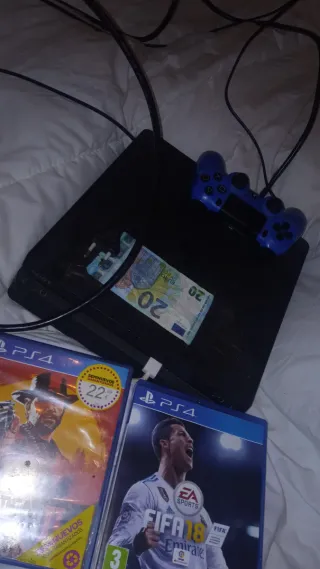 Se vende consola PlayStation 4 Slim de 500GB en color negro incluye 5 mandos de los cuales 3 originales, algunos botón de algún mando falla algo - Incluye los siguientes juegos: - Call of Duty: Black Ops III - Titanfall 2 - Battlefront - Grand Theft Auto V - Rainbow Six Siege - Watch Dogs 2