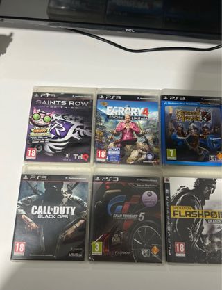Colección de 12 videojuegos para PlayStation 3 como recién desprecintados. - Call of Duty: Black Ops 10€ - Call of Duty 4: Modern Warfare 10€ - Call of Duty: Advanced Warfare 10€ - Call of Duty: MW3 10€ - Assassin's Creed: La Hermandad 10€ - PES 2012: Pro Evolution Soccer 10€ - Uncharted: El Tesoro de Drake 15€ - Uncharted 3: La Traición de Drake edición limitada 15€ - Need for Speed: ProStreet 20€ - Far Cry 2 20€ - Soldier of Fortune: Venganza (raro de verse) 25€ - Killzone 2 20€