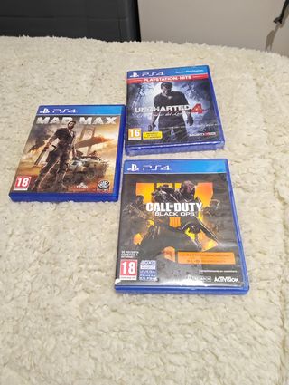 En buen estado Uno de ellos es precintado Se vende juntos o por separado Calle of duty black ops 3 - 15€ Mad max 15€ Uncharted 4 - 20€ Si se compra todo junto te ahorras 5€