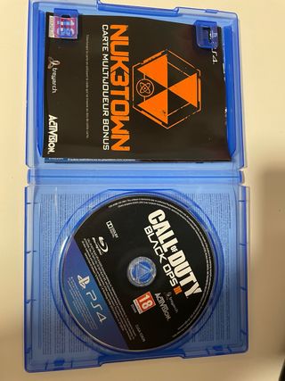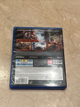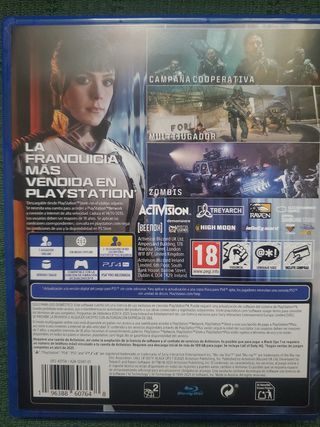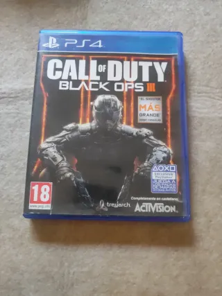 Juego de playstation 4 Call of Duty Black Ops 3 versión PAL España con papel en castellano. Juego al completo, incluye carátula, portada, papel y disco totalmente original. Incluye carátula, papel y disco como nuevo. Disco sin rayados. Juego funciona perfectamente y ha sido probado en consola PS2. De los mejores call of duty mucho mejor que los de ahora. Una forma de vivir de verdad la experiencia de call of duty. Recomendable con amigos.