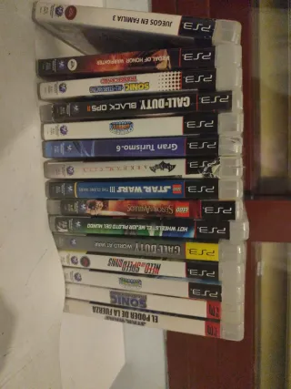 Lote de 12 videojuegos para PlayStation 3. - Juegos incluidos: - JUEGOS EN FAMILIA 3 - MEDAL OF HONOR WARFIGHTER - SONIC ALL-STARS RACING TRANSFORMED - CALL DUTY BLACK OPS II - LittleBigPlanet Karting - Gran Turismo 6 - Batman Arkham City - LEGO STAR WARS III THE CLONE WARS - LEGO SEÑOR ANILLOS - HOT WHEELS EL MEJOR PILOTO DEL MUNDO - CALL DUTY WORLD AT WAR - NEED FOR SPEED RIVALS - SONIC - STAR WARS EL PODER DE LA FUERZA Están todos menos 4