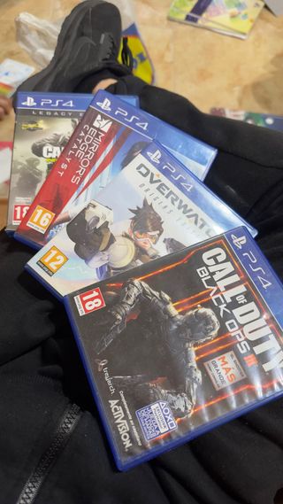 Lote de videojuegos para PS4. - Call of Duty: Black Ops III - Overwatch: Origins Edition - Mirror's Edge Catalyst - Call of Duty: Infinite Warfare - Call of Duty: Modern Warfare