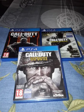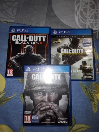 Colección completa de la saga Call of Duty para PlayStation 4.SE PUEDEN COMPRAR INDIVIDUALMENTE - Call of Edición Day One - Juego Day One Edition. - Duty: Black Ops III 13,99 - Call of Duty: Black Ops 11,99 - Call of Duty: Advanced Warfare 9,99€ - Call of Duty: Legacy Edition (Infinite Warfare) 9,99 - Call of Duty: WWII 9,99€ - Call of Duty: Ghosts 17,99 - Call of Duty: Modern Warfare 9,99€ - Call of Duty: Black Ops Cold War 16,99€ - Call of Duty: Vanguard 18,99€ - Call of Duty: Modern Warfare II 19,99 - Call of duty Black Ops 6 (Nuevo Precintado) 49,99€ - Call of Duty: Modern Warfare Precintado 37,99 usado 29,99€