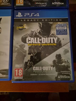 Edición Legacy del videojuego Call of Duty: Infinite Warfare para PS4. Incluye el juego base y contenido adicional. - Disco del juego Call of Duty: Infinite Warfare. - Código para Call of Duty: Modern Warfare Remastered (descarga digital).Usado seguramente Incluye español Hago envíos Dispongo de más juegos de Wii, Wii U, Switch, Game Boy, Color y advance, DS, 3DS, play station 1, 2, 3, 4, 5, Pc, PsP y PS Vita.