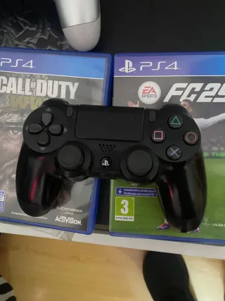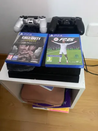 Consola PlayStation 4 en perfecto estado, lista para disfrutar. - Incluye dos mandos. - Incluye los juegos Call of Duty: WWII y FIFA 25.
