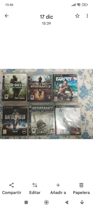 Se vende lote de 6 videojuegos para PlayStation 3 en buen estado. Call of durty 4: Moden Warfare juego está inglés los demás están español - Assassin's Creed II - Resistance: Fall of Man - Battlefield 3 - Far Cry 3 - Resistance 2 - Call of Duty 4: Modern Warfare está inglés