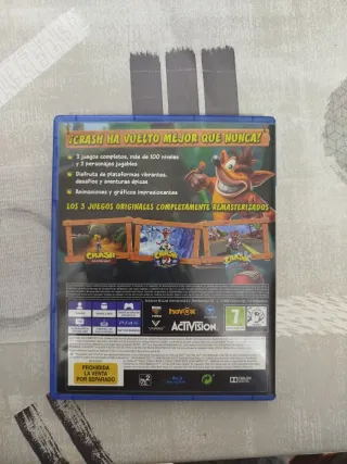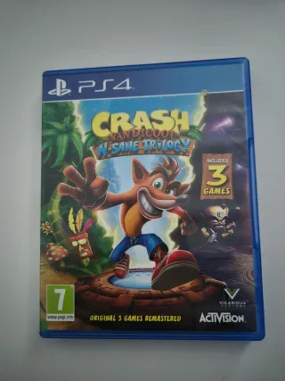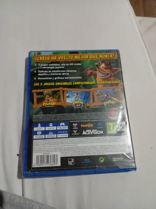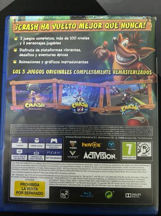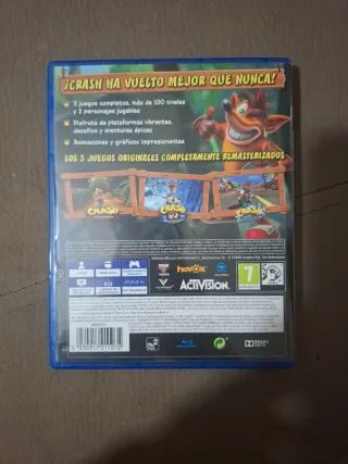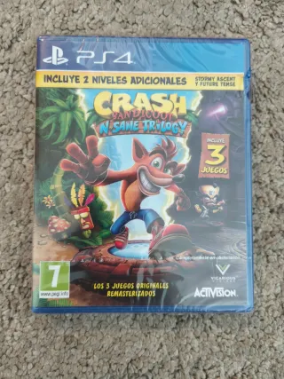Revive las aventuras de Crash Bandicoot con esta trilogía remasterizada para PS4. Incluye los tres juegos originales con gráficos mejorados. Precio negociable - Incluye 2 niveles adicionales: Stormy Ascent y Future Tense. - Los 3 juegos originales remasterizados. - Clasificación PEGI 7.