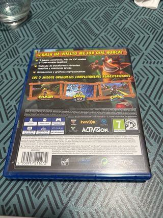 Juego Crash Bandicoot N. Sane Trilogy para Ps4 y Ps5. Incluye los 3 juegos originales remasterizados. - Incluye 3 juegos. - Completamente en castellano. - Seminuevos garantizados.