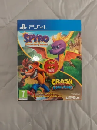 Pack de juegos para PlayStation 4 que incluye Spyro Reignited Trilogy y Crash Bandicoot N. Sane Trilogy. - Los 6 juegos originales remasterizados. - Completamente en castellano. Muy difícil de encontrar con su caja de cartón