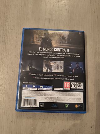 Videojuego Days Gone para PlayStation 4. sufrió una pequeña caída y la carátula está rota, pero el juego en perfecto estado. - Género: terror y supervivencia. - Clasificación PEGI: 18.