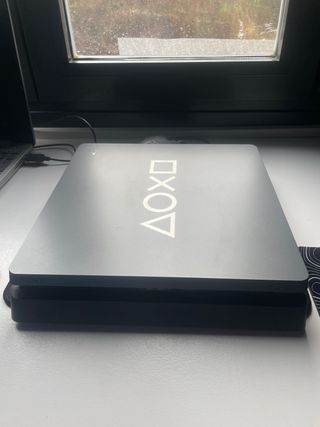 Consola PlayStation 4 en color azul. - Diseño con símbolos dorados. - 500gb de memoria - Incluyo un mando aunque esta algo dañado -No ofertas ridículas -Incluyo cable de alimentación y un hdmi
