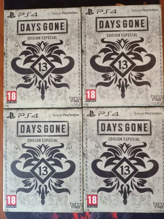Edición especial del videojuego Days Gone para PlayStation 4. Todos completos con manuales en español. Incluye libro de arte, steelbook,juego. El precio es por unidad, se acepta cambio por otros juegos.