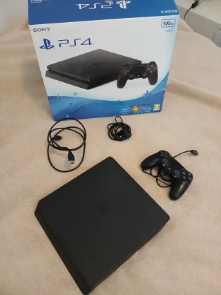 Consola de videojuegos PlayStation 4 con disco duro de 500GB. - Modelo Slim. - Color negro. Precio negociable si es recogida en mano. Envío a domicilio= ❌ No hago envíos por correos (a domicilio) porque las oficinas están saturadas y tienen muy mal servicio. Disculpe las molestias. **Solo presencial por Moncloa o Legazpi** (Pruebo correcto funcionamiento si lo desea)