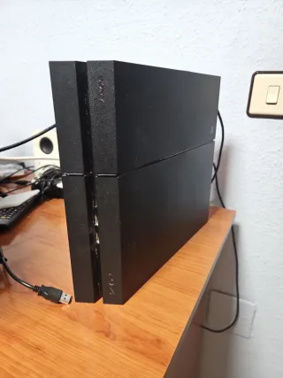 PlayStation 4 de 500 GB comprada en 2016, usada durante 4 o 5 años; después se guardó en un lugar que no cogiese polvo (Versión de software 12.52). No se le ha hecho mantenimiento desde entonces, pero es completamente funcional y no tiene problemas alguno. Los mandos no son originales de Sony, pero son licenciados, y no presentan "drift" ni problemas con los botones (no dispongo de cables de carga). Se incluyen los dos mandos, el cable de alimentación y su HDMI; así como el Assassins Black Flag (en perfecto estado) de regalo.