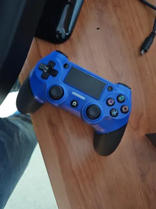 PlayStation 4 en perfecto estado, con una consola de 500 GB y un mando inalámbrico DualShock 4 azul. - Incluye la consola PlayStation 4 y un mando. - Consola en color negro. - Mando en color azul. -Cables incluidos