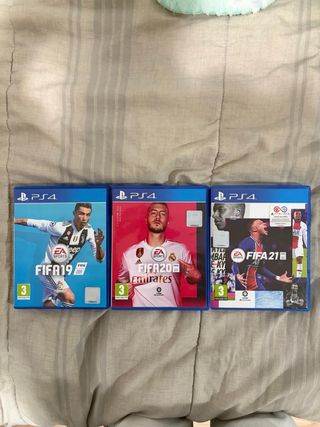 Pack de tres videojuegos de fútbol para PlayStation 4. Si son sueltos seria 4 euros cada uno - FIFA 19 - FIFA 20 - FIFA 21