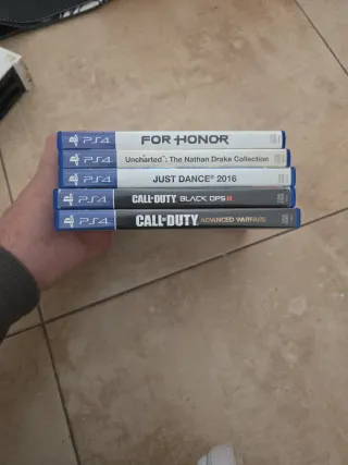 ✅ Incluye: ✔ 4 mandos DualShock 4, ideales para jugar en grupo. ✔ 7 juegazos para todos los gustos: GTA V 🚗💥 FIFA 20 ⚽🏆 Just Dance 2016 🕺🎶 Call of Duty Black Ops 4 🔫🔥 Call of Duty Modern Warfare Remastered + Infinite Warfare 🪖⚔ Watch Dogs 2 Gold Edition 🎮🔓 💰 Precio ajustado y negociable. 📍 Entrega en mano o envío a cargo del comprador. ¡No dejes pasar esta oferta! Escríbeme y llévate este pack listo para disfrutar.