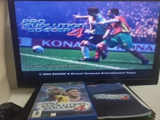 Lote de cuatro videojuegos de fútbol para PlayStation 2. - Pro Evolution Soccer 3 - Pro Evolution Soccer 4 tengo 2 - Pro Evolution Soccer 6 - Pro Evolution Soccer 2008 Tambien suelo cambiar por productos del estilo o voy buscando GameBoy Color , Nintendo SP , Psvita , Nintendo 64 , mi precio es moldeable y pongo de mas tambien. MAS PRODUCTOS EN MI PERFIL