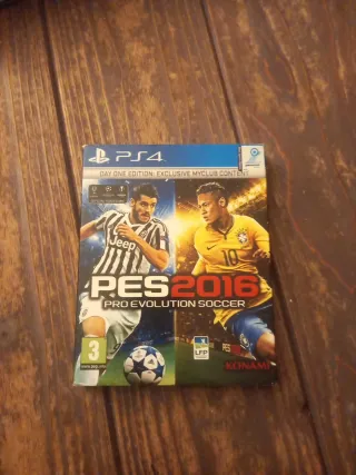 Videojuego de fútbol PES 2016 para PlayStation 4. - Edición Anniversary Edition. - Incluye carátula dorada y con firma oficial. - Licencia LaLiga. PRECIO NEGOCIABLE ✅
