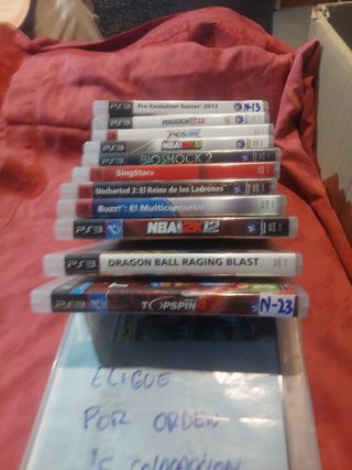 Lote de videojuegos para PlayStation 3. - Pro Evolution Soccer 2013 - Madden 13 - PES 2008 - NBA 2K10 - Bioshock 2 - SingStar - Uncharted 2: El Reino de los Ladrones - Buzz!: El Multiconcurso - NBA 2K12 - Dragon Ball Raging Blast - Top Spin 4