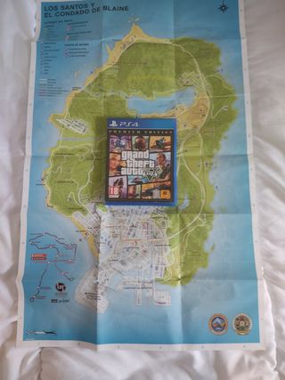 Viene también incluído un mapa físico de GTA 5 🗺️ En mi perfil estoy vendiendo una Playstation 4 pro 1 TB y más juegos🎮👾 ‼️Tendrás un descuento de 5 € en todos los juegos si también compras la Playstation viene todo en un {pack}