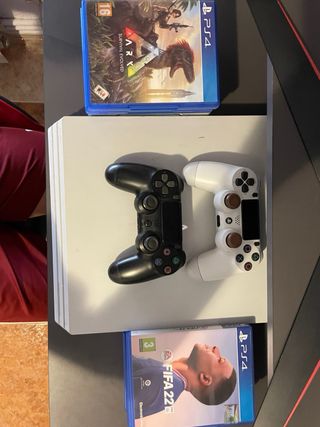 Vendo PlayStation 4 Pro en perfecto estado. Incluye dos mandos, uno negro y otro rojo. Además, entrego los juegos: FIFA 21 (Edición limitada Getafe CF SAD), Tom Clacy The Division 2 (seminuevo), Dragon Ball FighterZ a estrenar y MegaHits sin micrófono. ¡Todo listo para jugar!