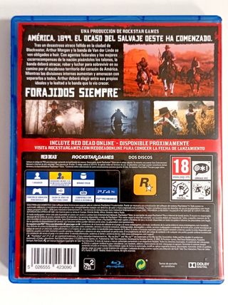 Videojuego Red Dead Redemption 2 para PlayStation 4. - Desarrollado por Rockstar Games. - Género: Acción y aventura, mundo abierto, shooter en tercera persona. LA CAJA ESTA UN POCO ROTA PERO SE CIERRA BIEN AL IGUAL QUE EL PLASTICO DEL SEGUNDO DISCO(disco izquierdo)