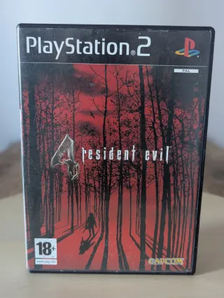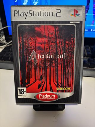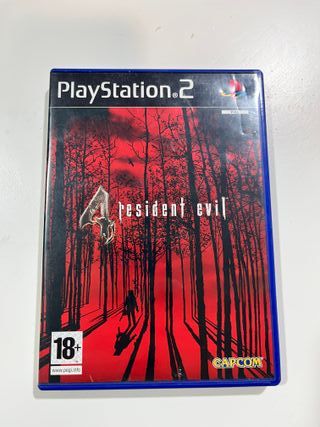 Videojuego Resident Evil 4 para PlayStation 2, edición Platinum. - Juego de terror y supervivencia. - Carátula con diseño de bosque rojo. - Clasificación por edades 18+. - Incluyendo manual de introducciónes