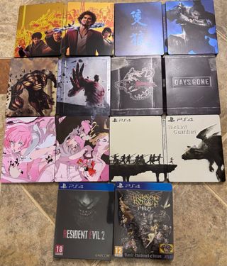 Colección de steelbooks para PS4, ideales para coleccionistas. - Steelbook Sekiro: Shadows Die Twice. - Steelbook Days Gone. - Steelbook Resident Evil 2. - Steelbook Dragon's Crown Pro. - Steelbook The Last Guardian. - Steelbook Yakuza: Like a Dragon. - Steelbook de Attack on Titan. - Steelbook Catherine Posibilidad de envio a cargo del comprador WALLAPAY NO FUNCIONA DESDE CANARIAS